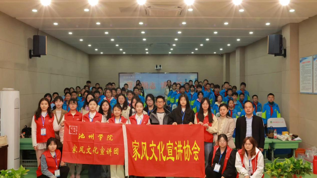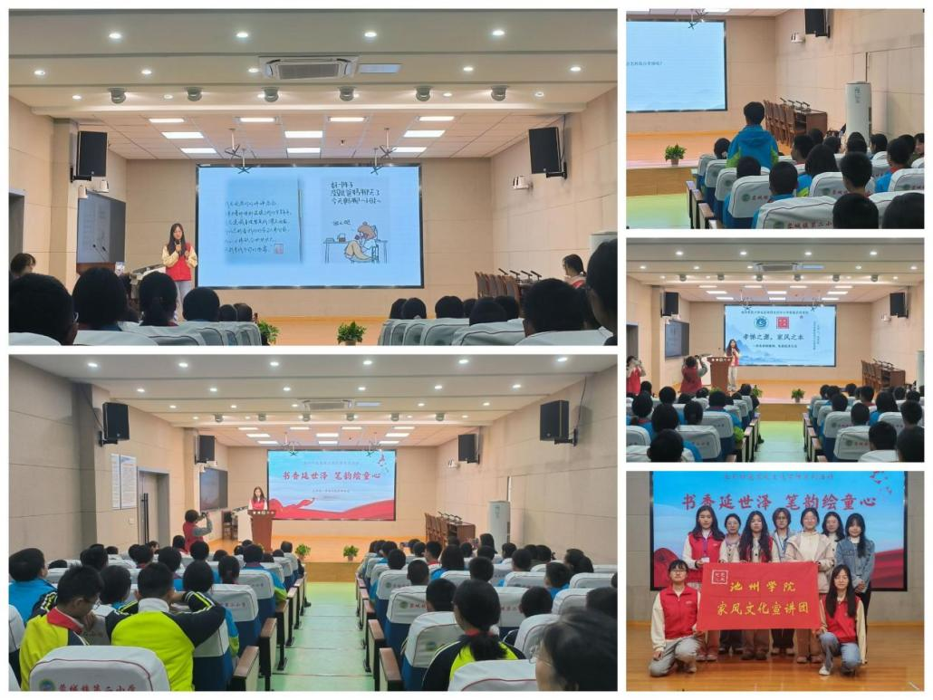 为贯彻落实习近平总书记关于注重家庭注重家教注重家风的重要讲话精神,推进大中小学思政教育一体化建设,形成全社会育人的大格局,推动文化育人的实效。2025年4月2日,池州学院家风文化宣讲团赴青阳一中、青阳蓉城二小进行宣讲活动。